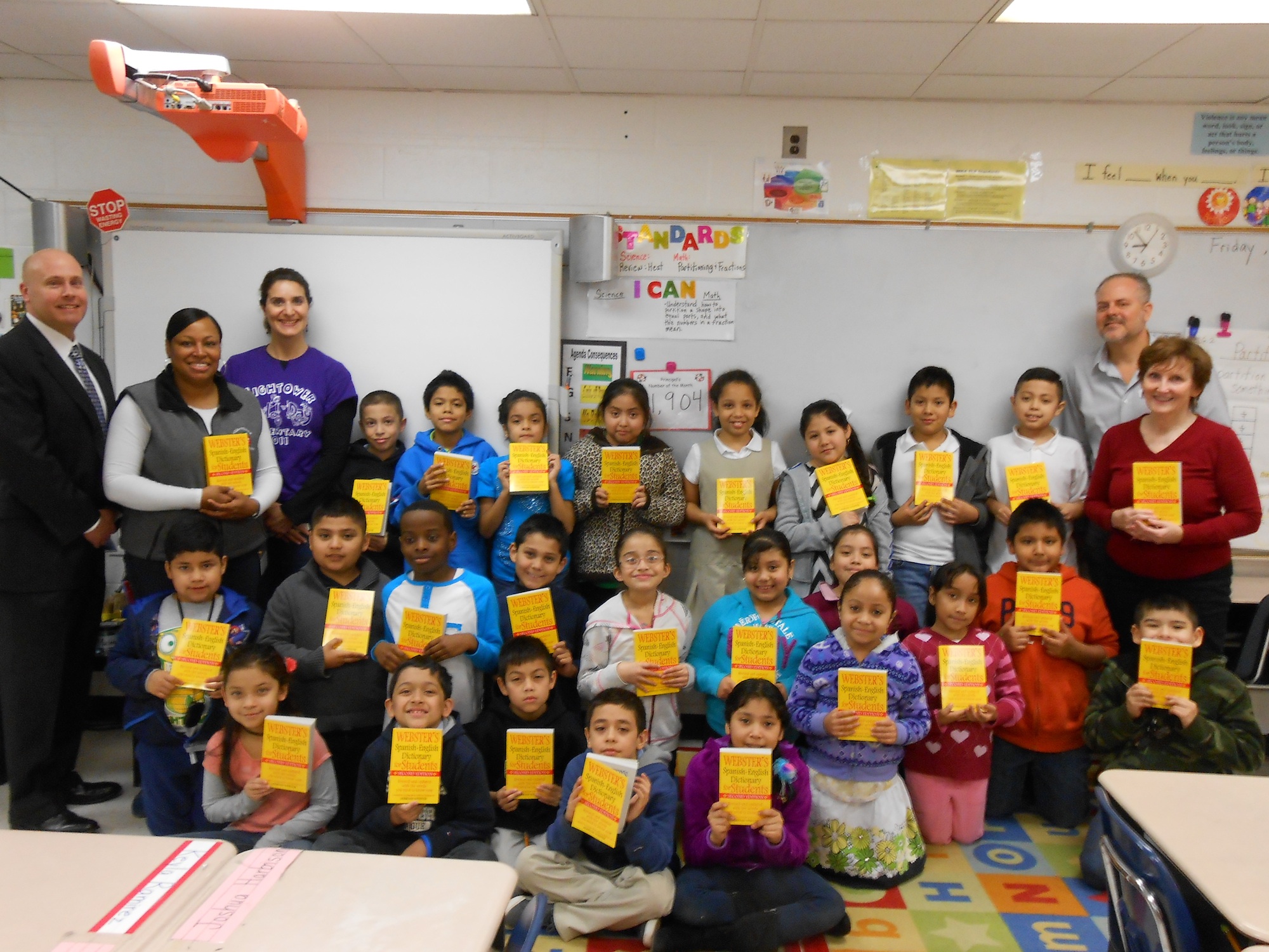 We are asked to provide Spanish/English and Chinese/English, as well as English dictionaries for these populations; English is a second language for a very high percentage of students in both schools. These dictionaries serve a need that would otherwise not be met and will often be one of the only books a student will be able to call their own.